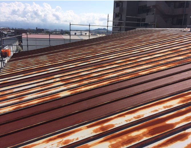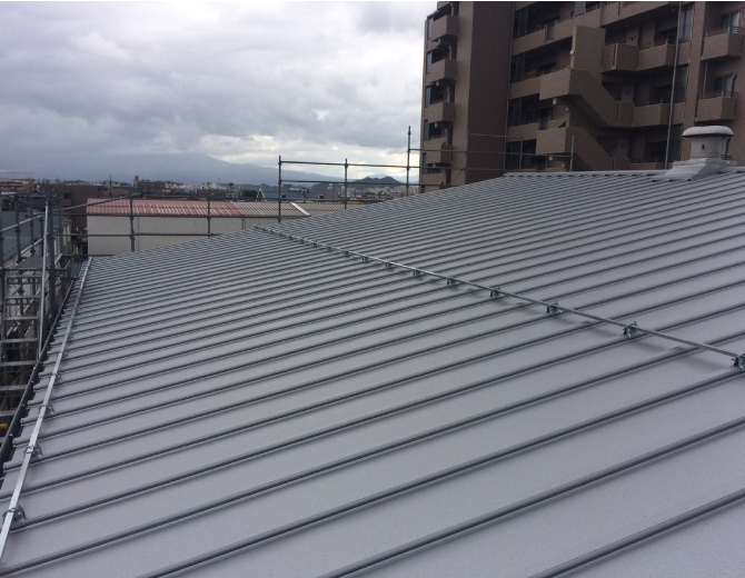 古い屋根を撤去しないでカバー工法にて改修しました。撤去する工法と比べて経済的。