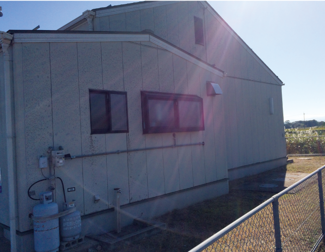 外壁サイディングの改修工事です。外壁の風化が激しかったため全面張替えを行いました。
